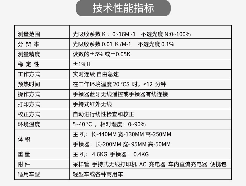 測量范圍:光吸收系數K:0~16m -1;不透光度 N:0~100%